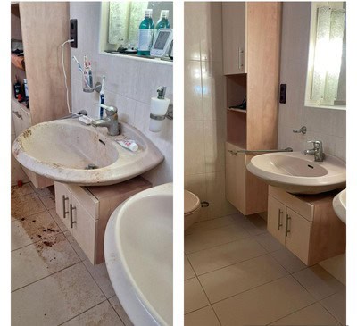 - Sanitär- & Badreinigung: Gründliche Reinigung von Fliesen, Armaturen, Duschkabinen und Toiletten.